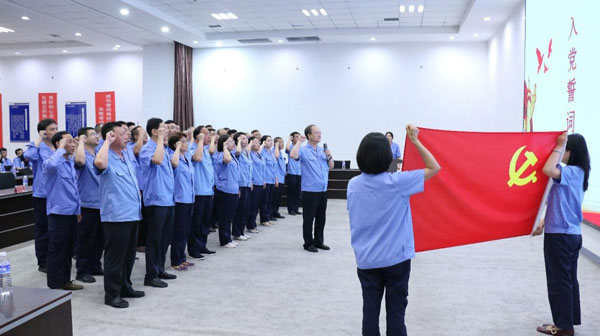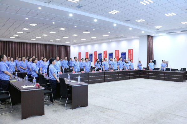 (大會(huì)主會(huì)場(chǎng)) 同心跟黨走,奮進(jìn)新征程。2024年7月13日下午,四星玻璃黨支部召開(kāi)慶祝建黨103周年暨“學(xué)黨史悟初心強(qiáng)企業(yè)做先鋒”主題教育啟動(dòng)大會(huì)。主會(huì)場(chǎng)設(shè)在紙房頭廠區(qū)總部二樓多功能會(huì)議室,前候廠區(qū)、光熱廠區(qū)、基地廠區(qū)等地設(shè)視頻分會(huì)場(chǎng)。公司黨支部書(shū)記、董事長(zhǎng)王煥一出席會(huì)議,公司全體黨員、入黨積極分子、公司中層以上領(lǐng)導(dǎo)、科室人員等260余人參加會(huì)議。會(huì)議由黨支部書(shū)記王煥一主持。 (黨支部書(shū)記、董事長(zhǎng)王煥一領(lǐng)誓) “起來(lái),不愿做奴隸的人們……”在嘹亮而莊嚴(yán)的國(guó)歌聲中,大會(huì)正式開(kāi)始。“我志愿加入中國(guó)共產(chǎn)黨,擁護(hù)黨的綱領(lǐng),遵守黨的章程……”在公司黨支部書(shū)記、董事長(zhǎng)王煥一領(lǐng)誓下,全體黨員重溫入黨誓詞,堅(jiān)定有力的聲音響徹全場(chǎng)。